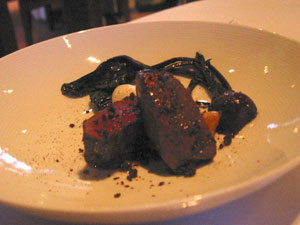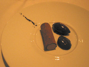 (7) Espresso arctic roll, bitter chocolate, blackberry – Maybe because the pre-dessert was so good, this was a let-down.