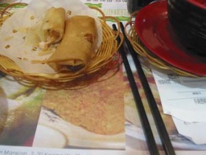 Spring rolls were next – the filling was garlic, cheese and prawn. An interesting combination but I didn’t think it worked well – the garlic and cheese were just too overpowering.