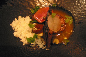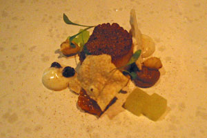 The final course before the cheese and desserts was shoulder and loin of mutton braised with caramelised onions/shallots and onion powder with caper and elderberries. The aroma of this dish was stunning, and the meat was so tender that it literally came off as soon as the knife touched it. According to Russell, the only problem with this dish was that there was not enough of it!