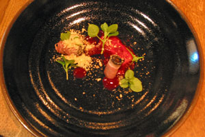 The Goosenargh duck liver parfait with beetroot jelly, beetroot puree, hazelnut and duck powder (made from blackened Lancashire duck skin) was beautifully presented. However, while the taste was good, it did not elevate to the same level as the presentation, and the reaction around the table was more lukewarm.