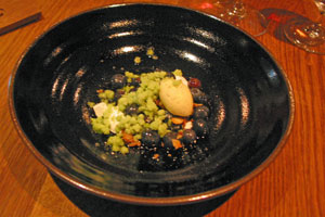 The next course was the additional optional course Ham, Pea and Egg, in which the duck egg was cooked at 62 degree Celsius to give the yolk a nice gooey texture – As Darcy and Bob were from the USA, I had to explain a bit about the BBC television show Great British Menu and why they had to try this course (even though I didn’t really need to spend too much effort to persuade them – they just decided to go for it!). Darcy only needed to mutter one word to show her approval of the dish: “Gosh!”.