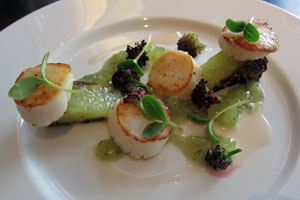 Russell had the roast scallops, which was served with cucumber ketchup and borage – the dish was refreshing and light, even though the scallops were not of the best quality.