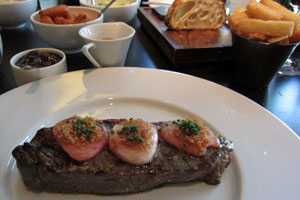 For main course, originally both Darcy and Russell wanted to have the beef royal. However, that was not available on the day, and so instead they had to settle with sirloin of black Angus, which came with mushroom ketchup, red wine juice and triple-cooked chips. While the sauce was intense and rich in flavour, the steak itself was not so exciting – unfortunately both steaks were over-cooked (Darcy asked for medium, while Russell asked for medium-rare… even by British standard, the medium-rare one looked more like medium verging on to well-done). The triple-cooked chips were disappointing, with very little potatoes in them, and they tasted like thick crisps rather than chips (or fries as the Americans would say). We were not impressed.