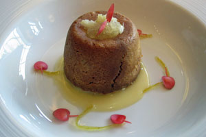 As for desserts, Darcy opted for cheese instead. Russell went for the baked lemon suet pudding which was served with caramel and jersey cream. The dry suet encased the gooey soft lemon syrup inside the pudding, and Russell’s verdict was “Heston does one-star dumb down” – interpret that in whatever way you want!