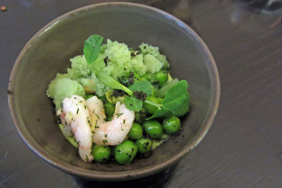 The appetiser was pea mousse and mint “snow” with prawns. It was a very refreshing dish – each mouthful was a delight, with a contrast of the texture of the various ingredients, and the explosion of flavours in the mouth. A very effective palate cleanser.