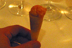 The first course was a cone of marinated smoked salmon – the salmon was beautifully marinated and filled the whole cone. It was a very promising start to the meal.