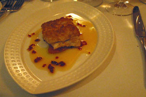 The fish course was hake on fondant tomato with chorizo & orange – the fish was very fresh and perfectly cooked, with a fine balance of tomatoes, chorizo (without going over the top with the quantity like some other places) and a fantastic orange sauce. At this point of the meal we enjoyed everything so much that we all agreed that we could have had a big plate of every dish on its own without any hesitation.