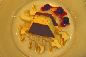The meat course was slow roasted fillet of Mortimer Forest venison with venison jus, gin and orange vinaigrette, and girolles and baked potato mash. The venison was very tender, and went so well with the sauce that Darcy even forgot that the wine was there (now that’s a first!). The dish was not too heavy on the stomach either.