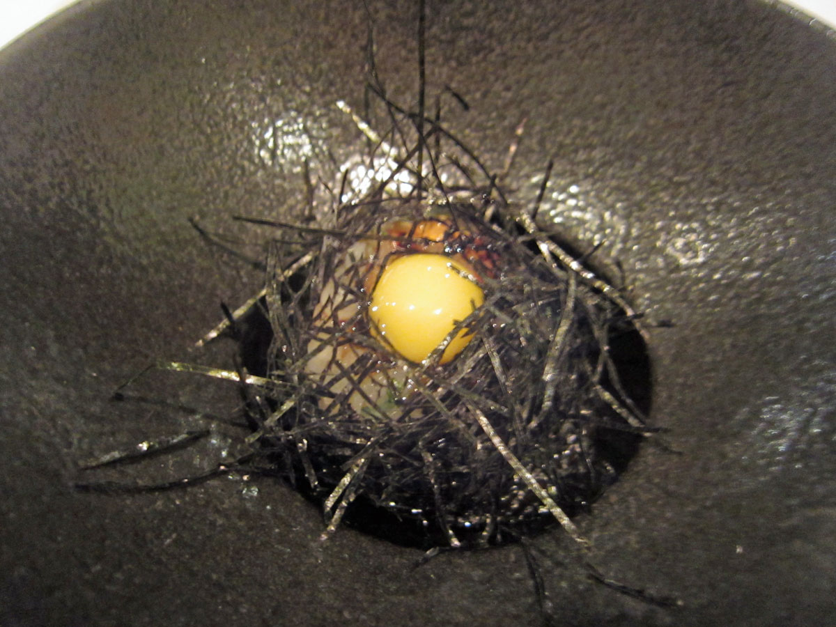 (7) Uni and Yuba (Black soy bean milk skin with finest uni, served with shiitake broth) was one of the very few disappointing dishes – a lack of flavour of any kind.